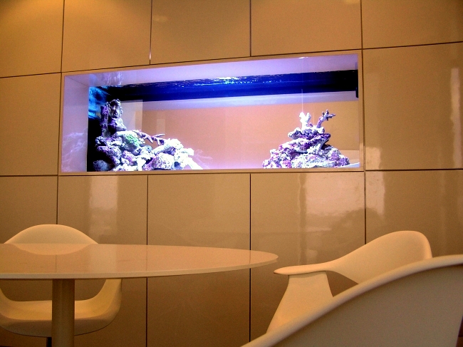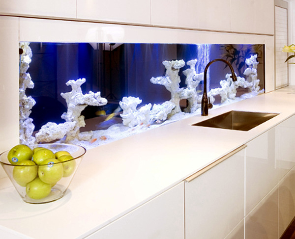 An aquarium is not only a habitat for fish. It could a work of art for the inside. Placement of the aquarium also plays an important role in modern interiors. To save space, you can integrate it into the wall. Aquariums create a mysterious feeling and serve as a living wall in a room Another advantage is that you can hide in another room all bolts and equipment that are required for aquariums.