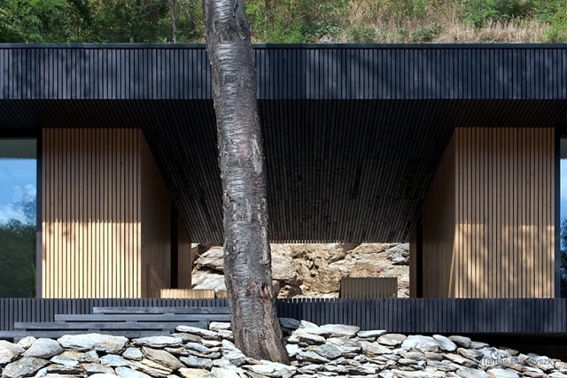 This single storey house with living room has 110 m2 of comfortable living space, all with relaxing views of nature. The minimalist style is beautiful in its simplicity and the smooth internal surfaces skillfully reflect the textures and shades of the surrounding natural environment, the rocky mountains.