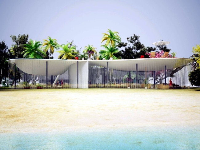 An important point in the office of the combination between art and architecture. The architecture is deliberately set as a usable object scene. The project "Blob Drop", the architects offer a natural and hectic life style. Flowing shapes define interconnected habitats that are comfortable in hide. Transparent fronts provide greater openness and closeness to nature. Lush plantings and shade trees surround the house on the beach futuristic. Concave structures put housing in constant motion. The building of the landscape and environment shaped fuse.