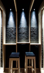 Welcome to La Bohème, a renovated by AVA Architects bar. They have given it its own identity using wood from floor to ceiling through the boxes of bottles.