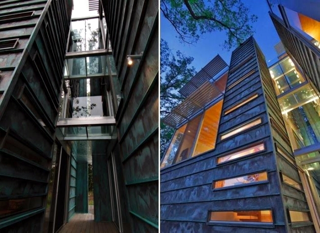 Architecture Travis Price Architects’ Washington DC office is proud of this ultra-modern family residence. The coating of patinated copper facade makes the building seem picturesque and distinctive. This building is green in every sense.