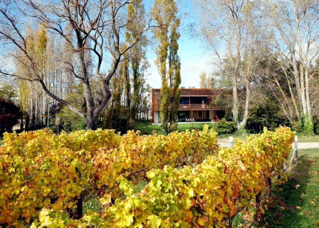 The firm Tonkin Zouleïkhâ Greer Architects has designed in collaboration with the design studio Paul Rolfe Architects a guest house in Australia. The guest house offers accommodation for journalists, wine and travel distributors. It was built on the site of an old house that burned in 2009. The house is equipped with a large glass facade and wooden blinds adjusted automatically. The architects have deliberately led the construction of beautiful vineyards. You can dine on the terrace landscape painting with a glass of wine. Two walls of the stainless steel construction to maintain the structure together. Despite the modern form of the building has a rustic facade – including through the use of wood. In this way, the house is part of the environment and traditional architecture.