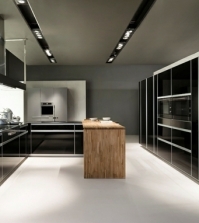 Framed by dark wood frame glass is very effective. Fronts Glass Kitchen with aluminum or stainless steel or in combination with glossy or matte laminated panels provide a contemporary touch to your kitchen to support. The glass is also used in the kitchen island to use. This creates an overall composition that applies not only to food but also stimulates creativity.