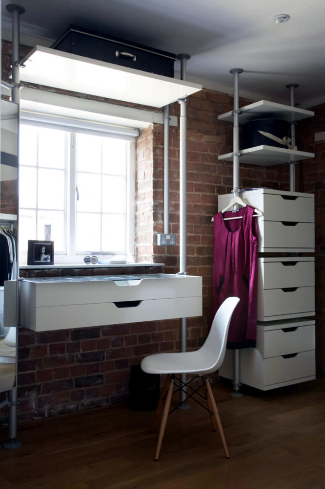 Very useful is the rack system, in which the medication is integrated. A will can see the shelves, drawers and mirror will change the way you love. In the context of a red brick wall and a nice wooden floor, the system of white shelves seems to minimalist and modern.